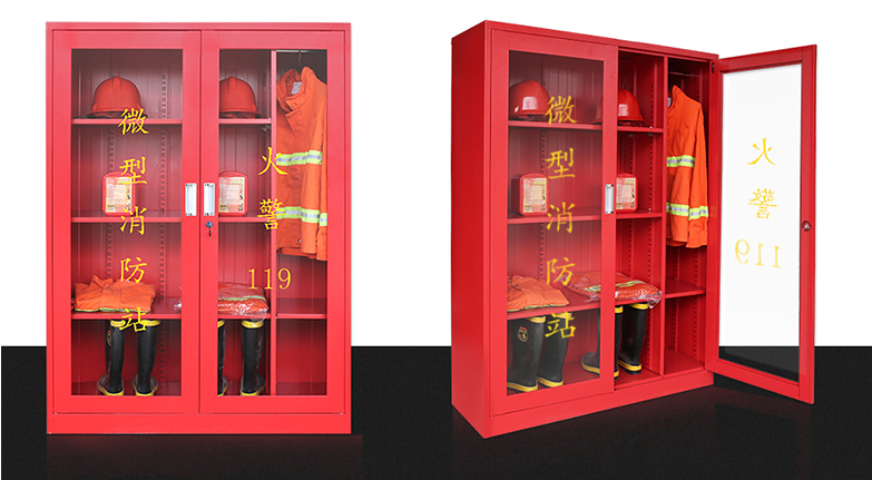 2.柜里含:消防頭盔2頂、靴子2雙、消防手套2雙、消防服2套、消防腰帶2條、消防自救呼吸器4個(gè)、消防自救繩2根、消防應(yīng)急手電2個(gè)、消防水棉被2條、消防水帶2套、擴(kuò)音器1個(gè)、消防水槍腰斧2把、干粉滅火器4個(gè); 3.材質(zhì):優(yōu)質(zhì)加厚冷軋鋼板,平整度高,鋼性強(qiáng),不易變形,結(jié)合高精準(zhǔn)激光切割技術(shù),使成品美觀答復(fù),使用順暢,3c認(rèn)證鋼化玻璃,抗沖擊強(qiáng)度是普通玻璃的3-5倍,應(yīng)急破碎后不易傷人;